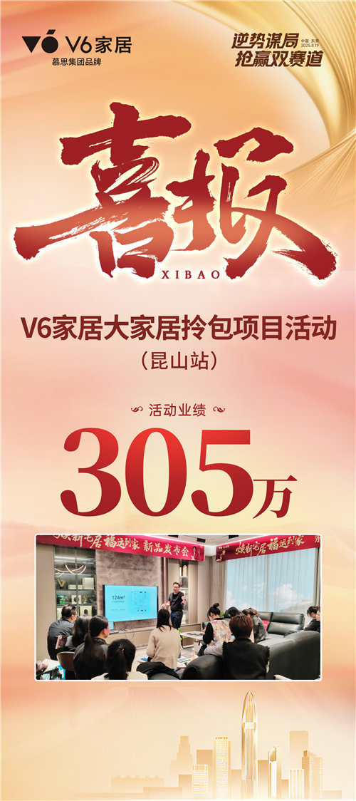 V6家居拎包项目面向V6大家居经销商,深耕楼盘项目的落地价值,聚焦楼盘,带教转型,持续不断地推进全国优秀样板城市打造。25 年1-7月共开展项目 28场,推动终端业绩产量5896 万,并形成专业的赋能体系,进行可持续复制的项目打造!代表城市:郑州、杭州、东莞、泾阳、昆山。