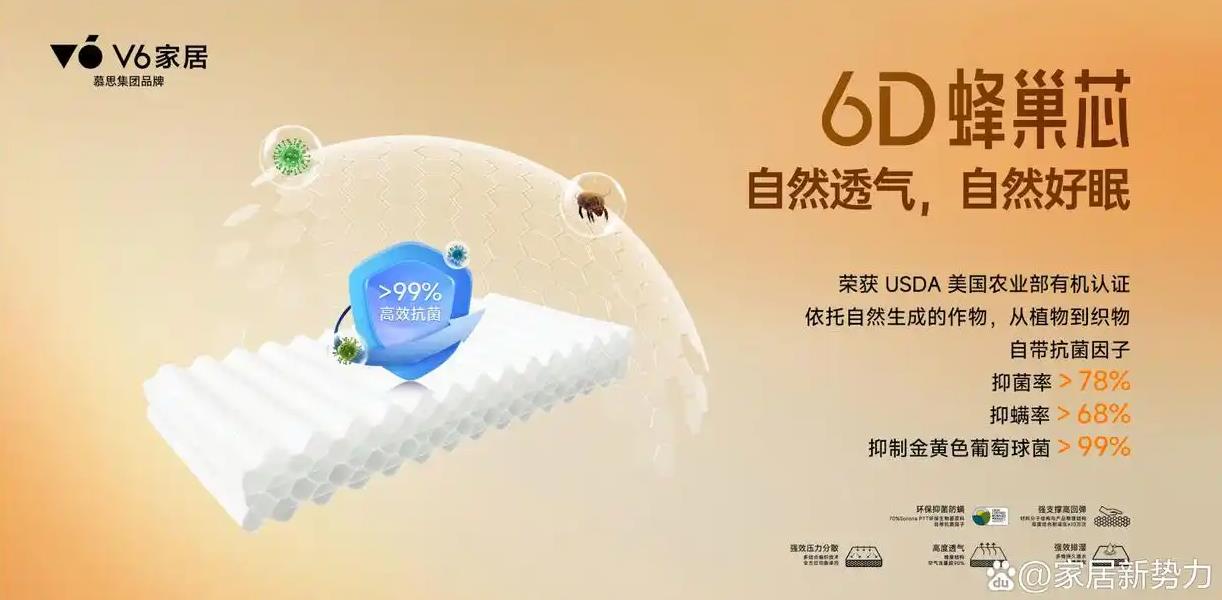总而言之,V6家居的6D蜂巢芯并非概念炒作,它确实在支撑性、透气性和耐用性上带来了实质性的提升,是品牌技术实力的体现。当然,床垫“如人饮水,冷暖自知”,强烈建议你亲身试躺。